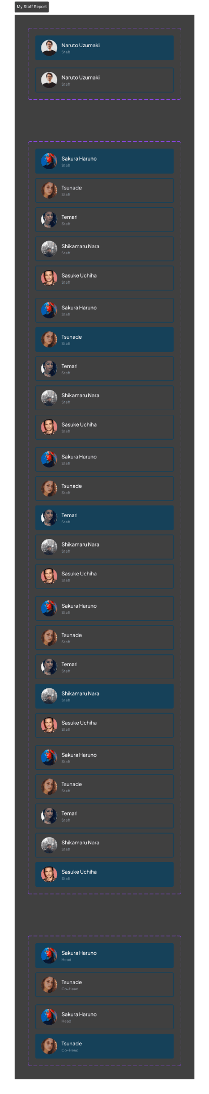 Both the head & co-head can view all their staff report by easily going to the My Staff Report page, choosing the staff name, and filtering it based on month and weeks. The interaction here is just to view, they can’t edit delete, or do anything other than just to see it all.