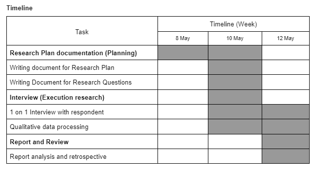 Since the problem already exists in the company, the C-levels want us to research it first to understand how it is the real situation that is happening. Here, we created a research plan to kickstart our process.