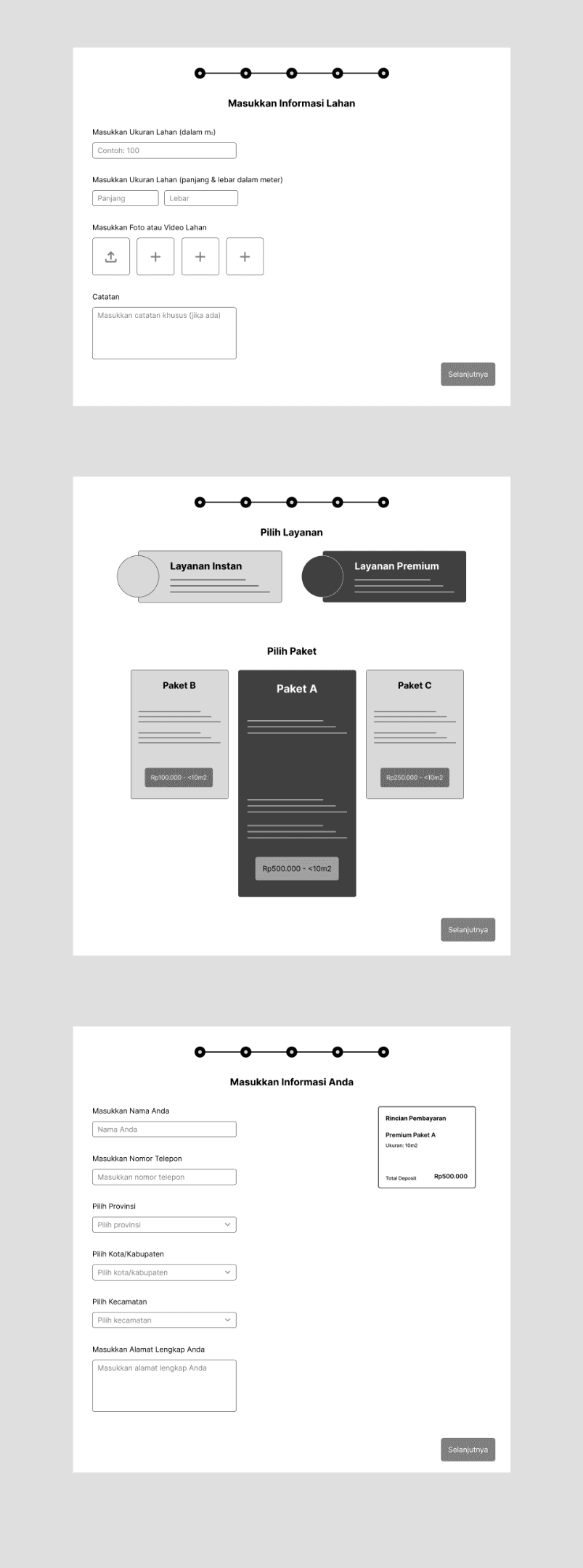 This page is the start of the garden ordering flow and we added a progress step on the top of the page which consists of Inspiration, Personal data, Land information, Service package, and Payment. This is to let users that the flow won’t take long and just in a simple 5 steps.