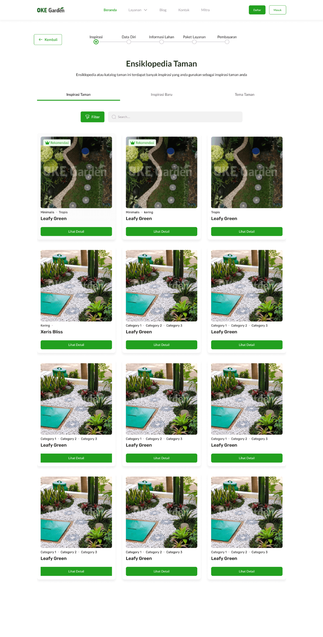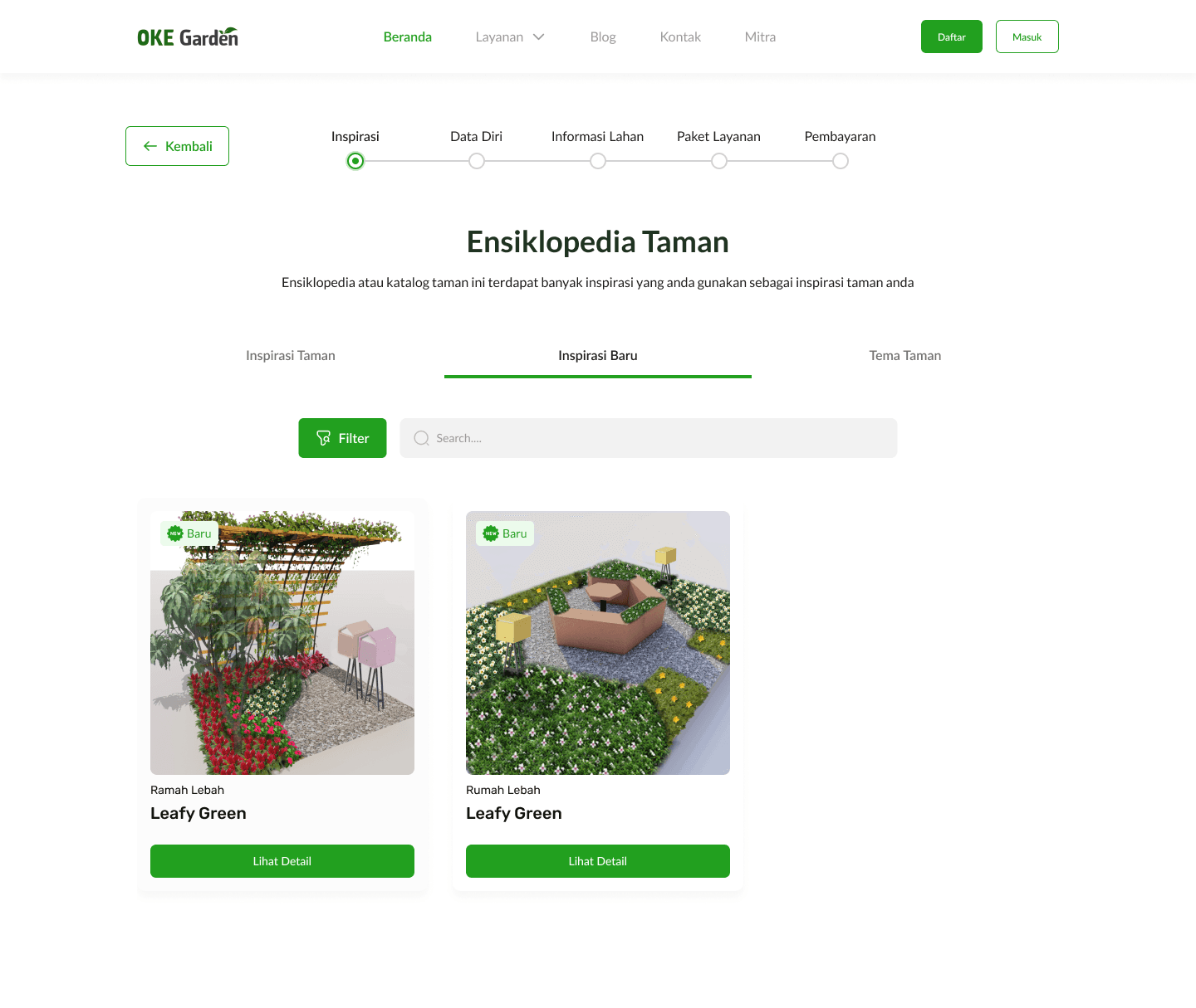 If users choose that they don’t have garden inspiration, they can search for references in the Ensiklopedia feature that has many garden design inspirations that can be made by OKE Garden, many kinds of gardens can be searched and filtered at wish.