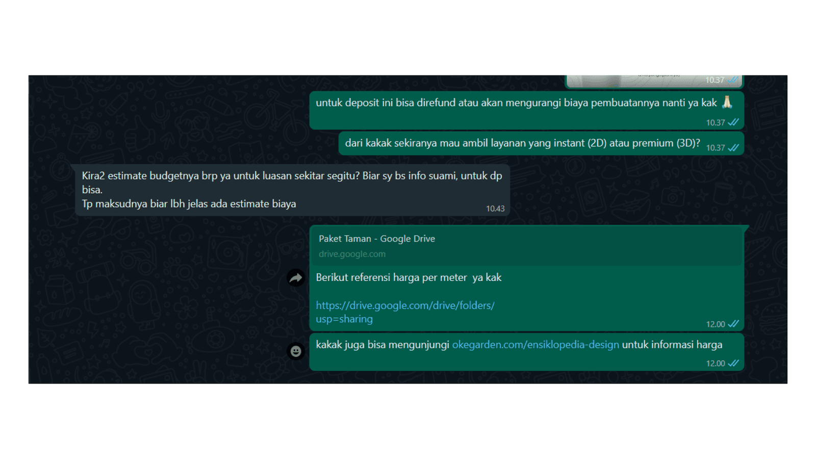 Another thing that I note is that the CRM team is always sending repetitive texts like price and service package messages over and over. While this can be easier done with the WhatsApp Business feature, it would be better if there is a dedicated place where users can look at that information easily before they ask.
