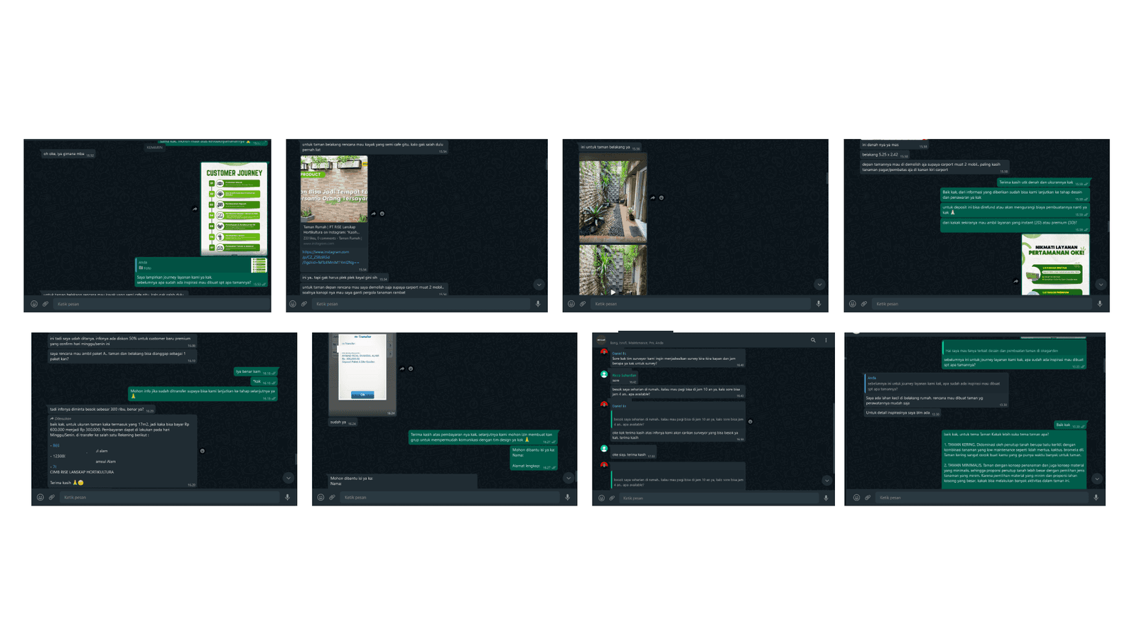 In this flow, the end condition is that after users pay the deposit, they will directly generate a WhatsApp group that they can join. This cut all the consultation with CRM and changed it using a website flow. All the main checkpoints from the old flow in WhatsApp are still there but improved and simplified. This way, users can just follow the instructions on the website, pay the deposit, and generate a WhatsApp group with other parties involved to work on the garden.