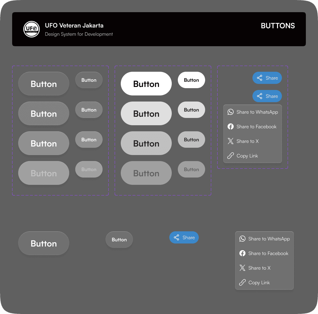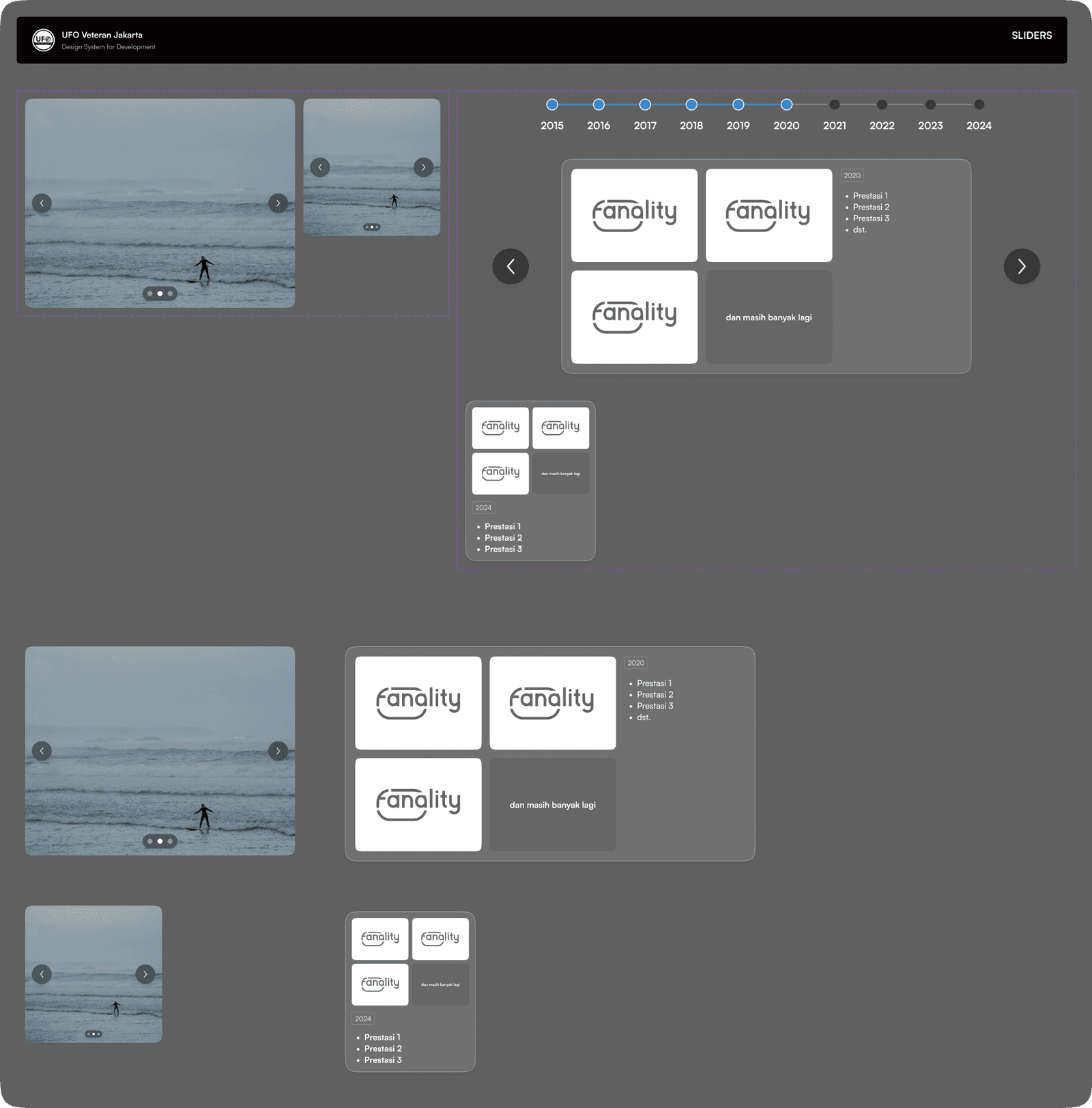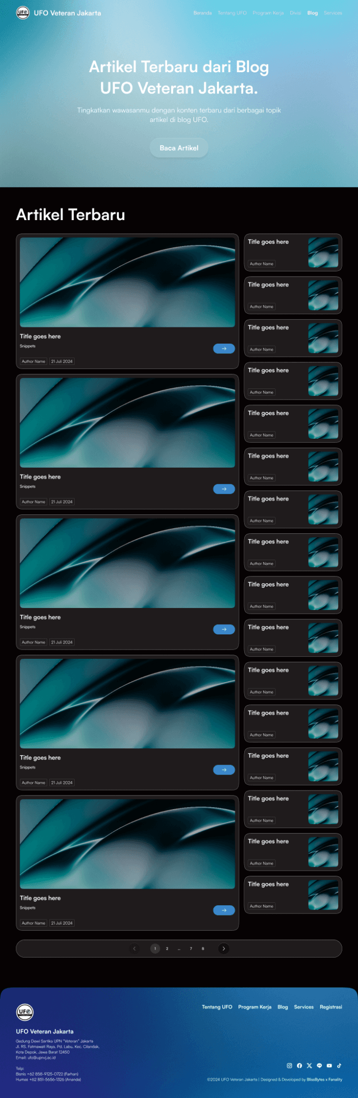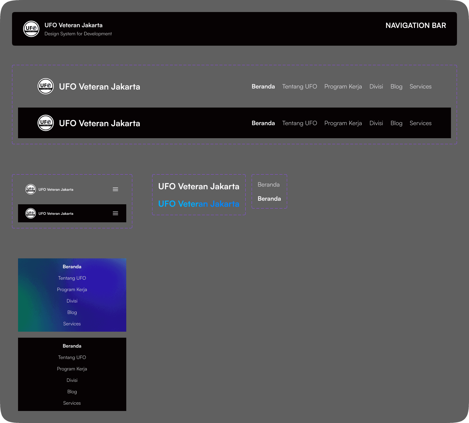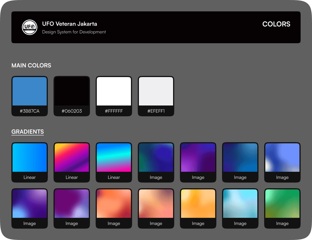 Our first scratch on the design is to explore some layout and design while also documenting the design style guide for consistent use. Here, we’re showcasing the design style guide for the UFO Veteran Jakarta website.