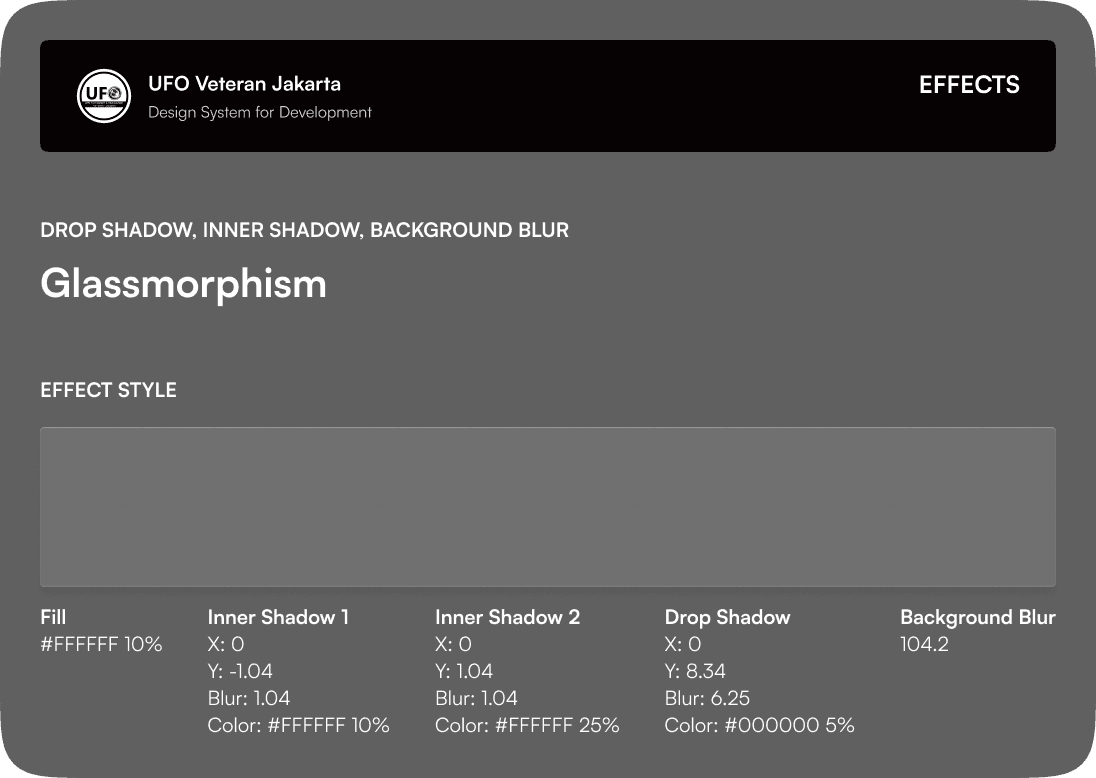 We used glassmorphism as the main design style and that’s why we’re also documenting the effect as a style. Glassmorphism is a design technique that is purposed to create a visual glass-like element that can be applicable to many things. Glassmorphism is created by adding background blur to the low-opacity layers, making it blur all the content on its back and that’s why it’s perfect to match it with a gradient background.