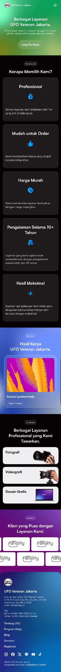 The last page that we designed is this service page that shows UFO’s service, their advantages, and proof of work. This section is specifically designed for users to know all about UFO’s service and see their portfolio.