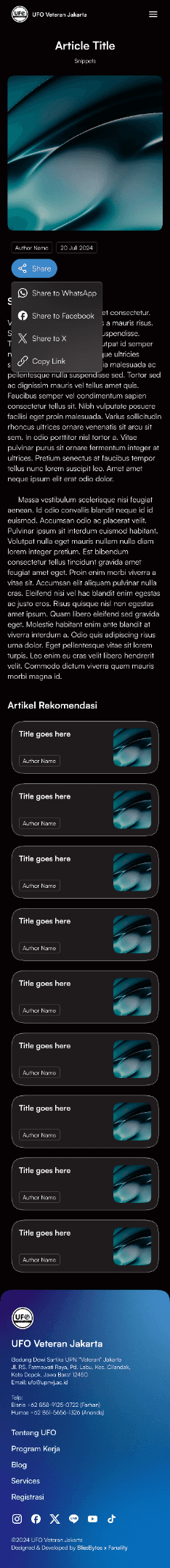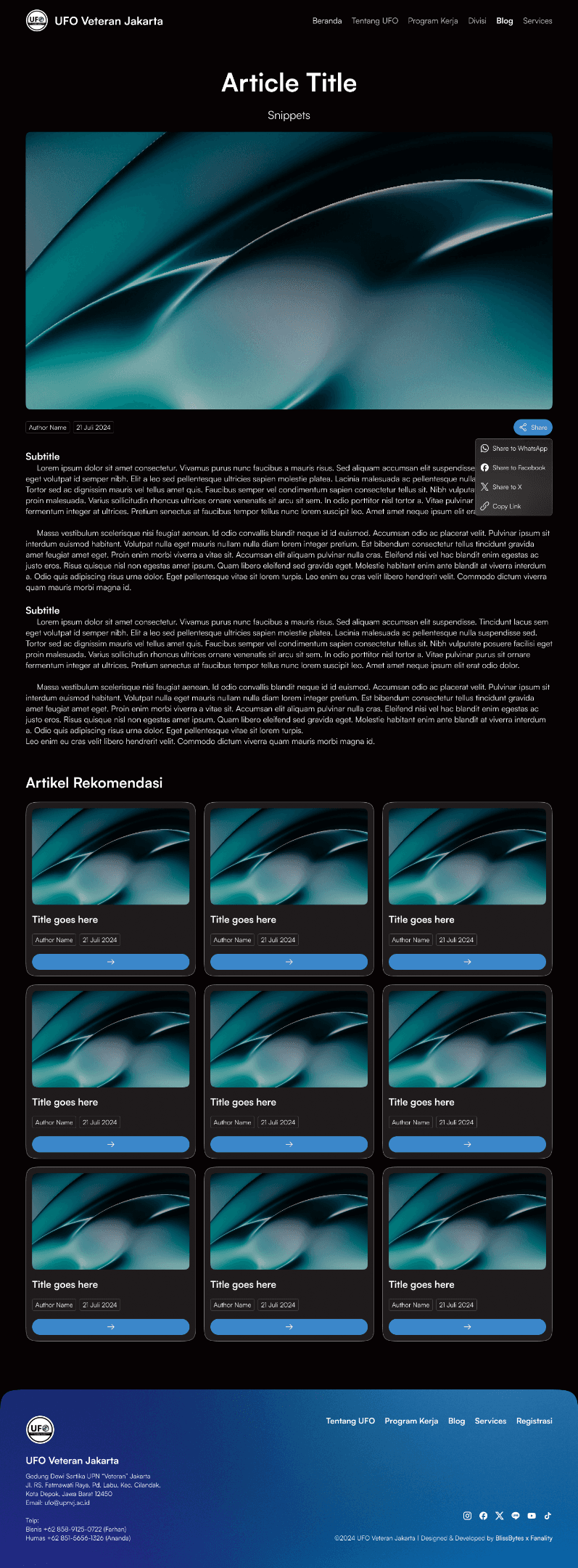 On each article page, the design will be like this with a huge image thumbnail, a full-width text, a share button, and 3 x 3 other article cards in the recommendation section. All of these were requested by the project manager such as the specific image ratio and the total of cards in the recommendation section.
